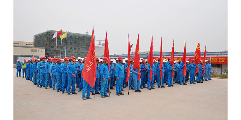 十建公司巨正源項目部項目經理林育慶作動員報告,提出了“決戰(zhàn)七十天”勞動競賽的目標任務主要是:完成土建地坪12000平方米,道路6500米,完成鋼結構安裝共計約500噸;壓縮機安裝19臺;完成管道預制230000Din;完成電儀電纜1033千米、44千米。他表示,項目部上下緊緊圍繞投產目標,強化項目管理,確保安全、質量與進度并舉,全力打好巨正源項目沖刺攻堅戰(zhàn),完成由項目施工到生產準備的實質性轉變,確保6.28開車成功。