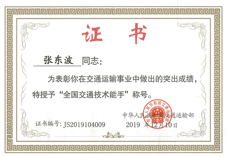 2019年,張東波同志通過(guò)層層選拔,成為廣東省交通運(yùn)輸廳代表隊(duì)一員,參加由交通運(yùn)輸部、人力資源社會(huì)保障部、中華全國(guó)總工會(huì)、共青團(tuán)中央共同主辦的第十一屆全國(guó)交通運(yùn)輸行業(yè)“天津港杯”流體裝卸操作工職業(yè)技能大賽全國(guó)總決賽,為廣東省榮獲團(tuán)體第六名立下汗馬功勞。張東波還榮獲個(gè)人成績(jī)第十一名的佳績(jī),在全國(guó)大賽的舞臺(tái)上充分展示了巨正源人過(guò)硬的技術(shù)本領(lǐng)和奮力拼搏的良好作風(fēng)。