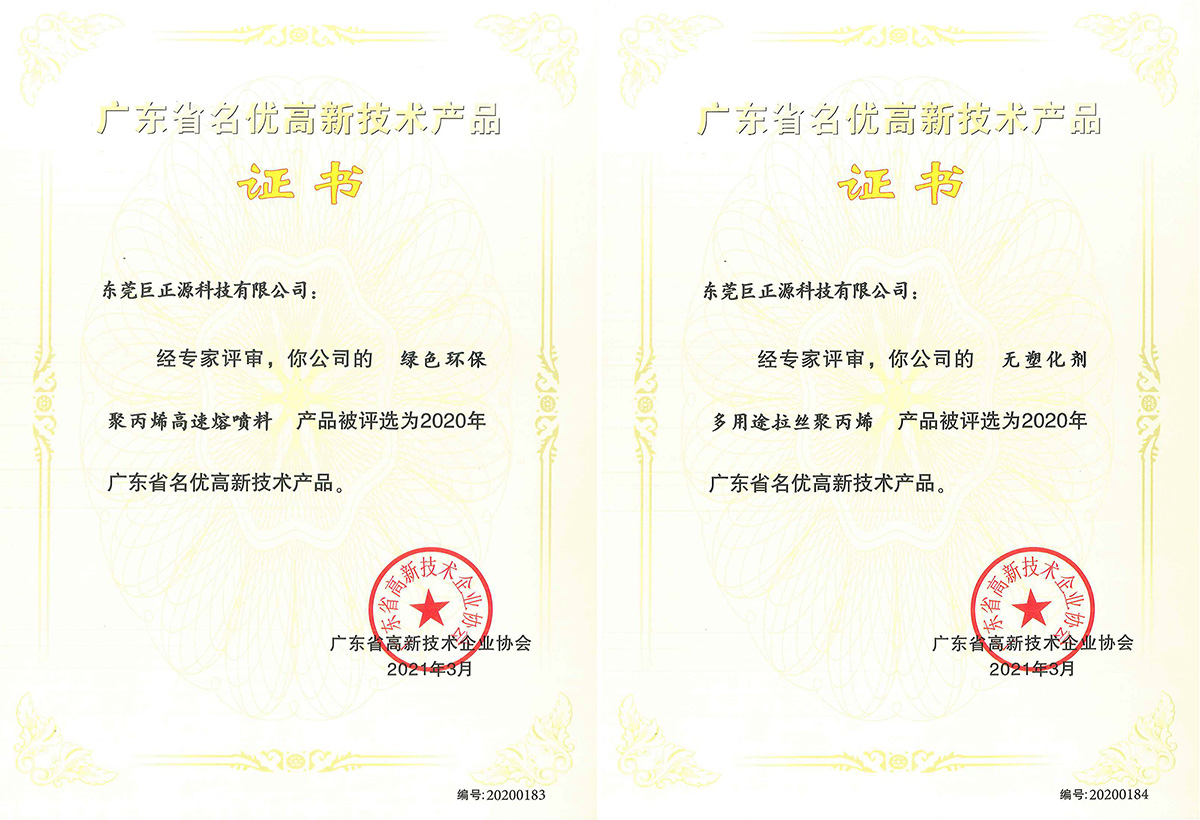 近日,巨正源科技公司自主研發(fā)、生產(chǎn)的“綠色環(huán)保聚丙烯高速熔噴料”、“無(wú)塑化劑多用途拉絲聚丙烯”兩類產(chǎn)品榮獲“廣東省名優(yōu)高新技術(shù)產(chǎn)品”稱號(hào),標(biāo)志著巨正源的高分子材料研發(fā)取得新成效、邁上新臺(tái)階。