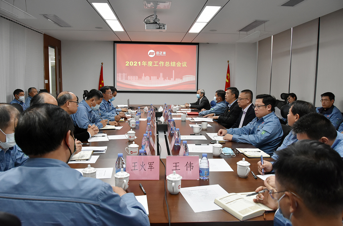 1月25日,巨正源公司召開2021年度工作總結會議,傳達學習了廣物控股集團2022年工作會議精神,全面總結了公司2021年工作情況,并對2022年工作進行了安排和部署。公司黨委書記、董事長石新琦作主題講話,副董事長、總裁王立貴作工作報告,會議由黨委副書記、紀委書記、董事唐泉涌主持。