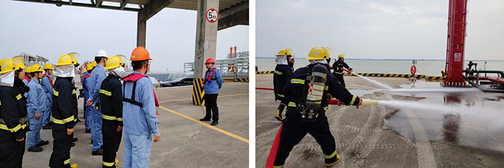 盛源石化、鴻源碼頭公司于5月2日17時(shí)30分開(kāi)展管線泄漏火災(zāi)事故應(yīng)急盲演,模擬碼頭管線法蘭連接部位松動(dòng)引發(fā)泄漏并起火,火勢(shì)迅速蔓延。中控室接警后,第一時(shí)間上報(bào)并調(diào)整視頻監(jiān)控,啟動(dòng)應(yīng)急預(yù)案。搶險(xiǎn)救援組、專職消防隊(duì)等迅速集結(jié),穿戴防護(hù)裝備抵達(dá)現(xiàn)場(chǎng),切斷電源,啟動(dòng)噴淋系統(tǒng),架設(shè)消防水槍壓制火勢(shì)。演練全程歷時(shí)20分鐘,各環(huán)節(jié)銜接緊密,未出現(xiàn)指令延誤或行動(dòng)混亂,充分展現(xiàn)了企業(yè)日常嚴(yán)格訓(xùn)練的成效和救援隊(duì)伍快速響應(yīng)的能力。