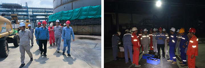 五一假期期間,揭陽(yáng)巨正源科技公司領(lǐng)導(dǎo)帶領(lǐng)值班團(tuán)隊(duì)深入一線,慰問(wèn)節(jié)日期間加班奮戰(zhàn)的員工,走訪了門(mén)衛(wèi)崗?fù)ぶ凳厝藛T、110kV變電站值班人員、醋酸及原料罐區(qū)施工團(tuán)隊(duì)及監(jiān)理人員,為他們送去牛奶、面包等慰問(wèn)品,并致以節(jié)日的問(wèn)候與誠(chéng)摯的感謝。公司領(lǐng)導(dǎo)鼓勵(lì)員工們繼續(xù)發(fā)揚(yáng)拼搏精神,堅(jiān)持安全第一、質(zhì)量至上、高效收尾,為項(xiàng)目高標(biāo)準(zhǔn)投產(chǎn)保駕護(hù)航。領(lǐng)導(dǎo)的關(guān)懷和鼓勵(lì),讓一線員工倍感溫暖和振奮,大家紛紛表示將站好每一班崗,全力以赴完成項(xiàng)目建設(shè)任務(wù)。